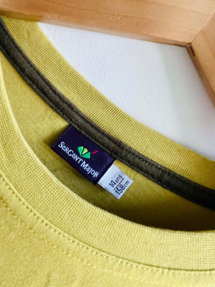 T shirt T 14 ans Marque" Sergent major" Vert avec impressions marron devant En coton Très bon état Envoie sous 48 h