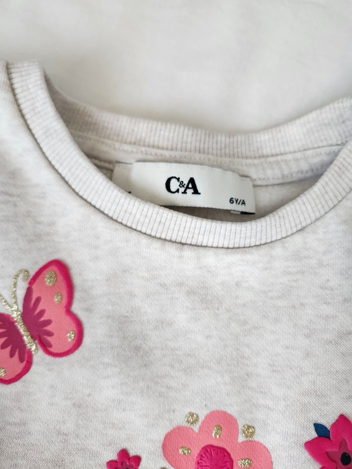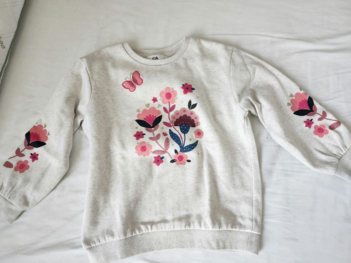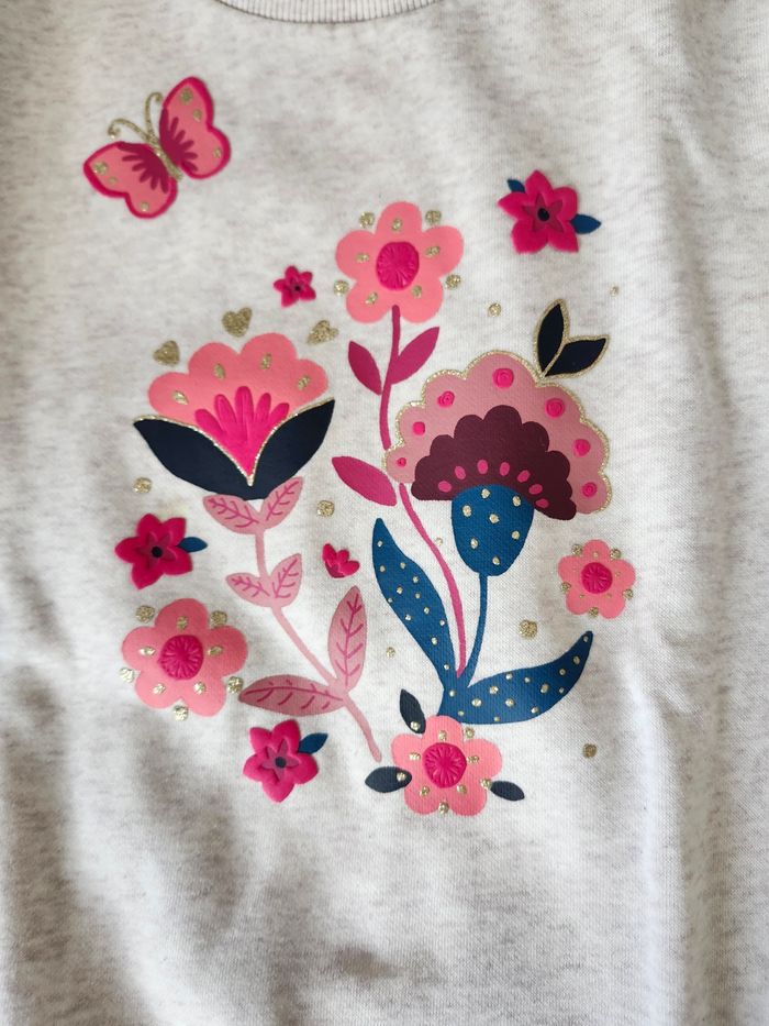 Sweat fille décors fleuris beige moucheté Taille 6 ans