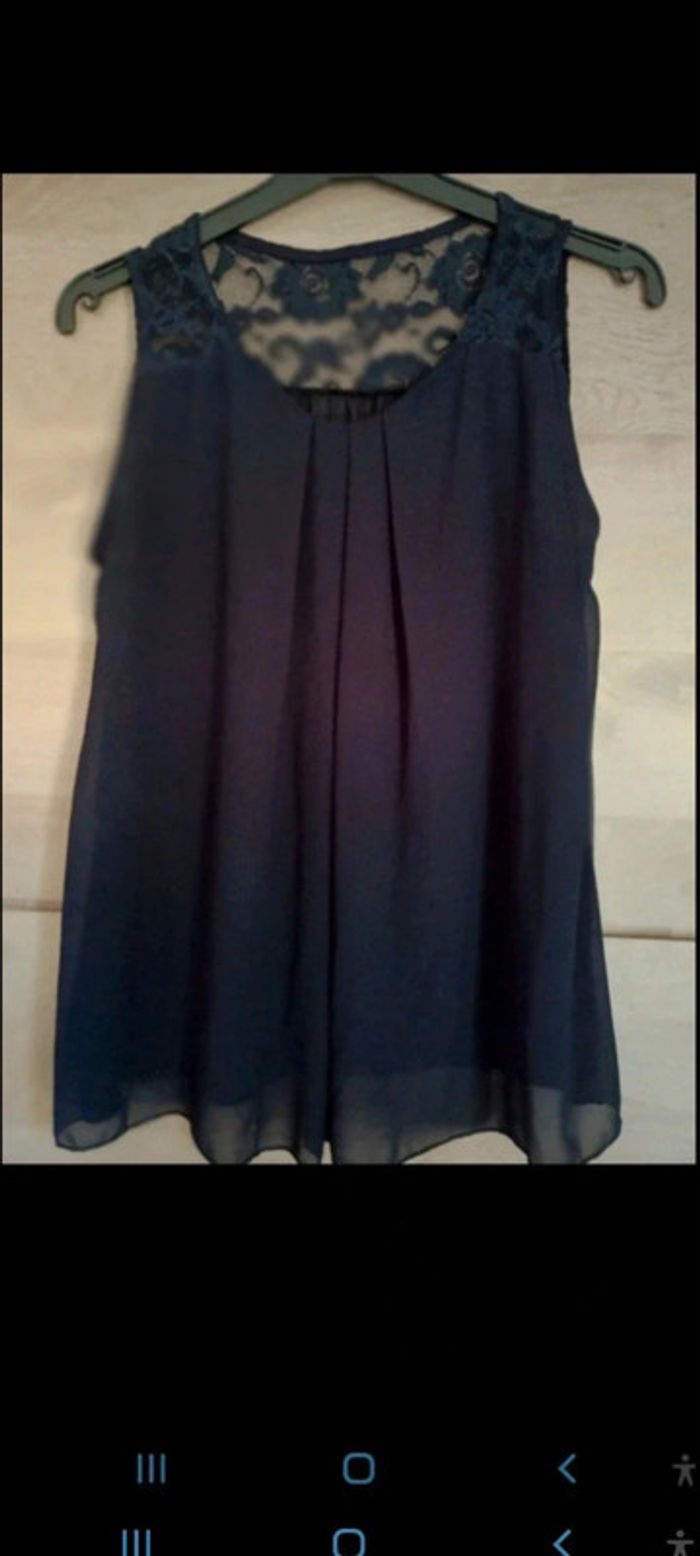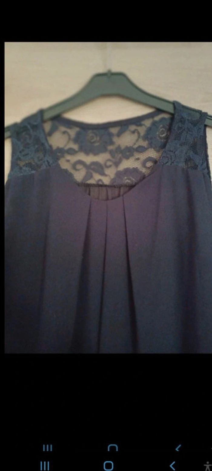Très belle blouse taille 38 bleu marine Haut du dos dentelé - photo numéro 2