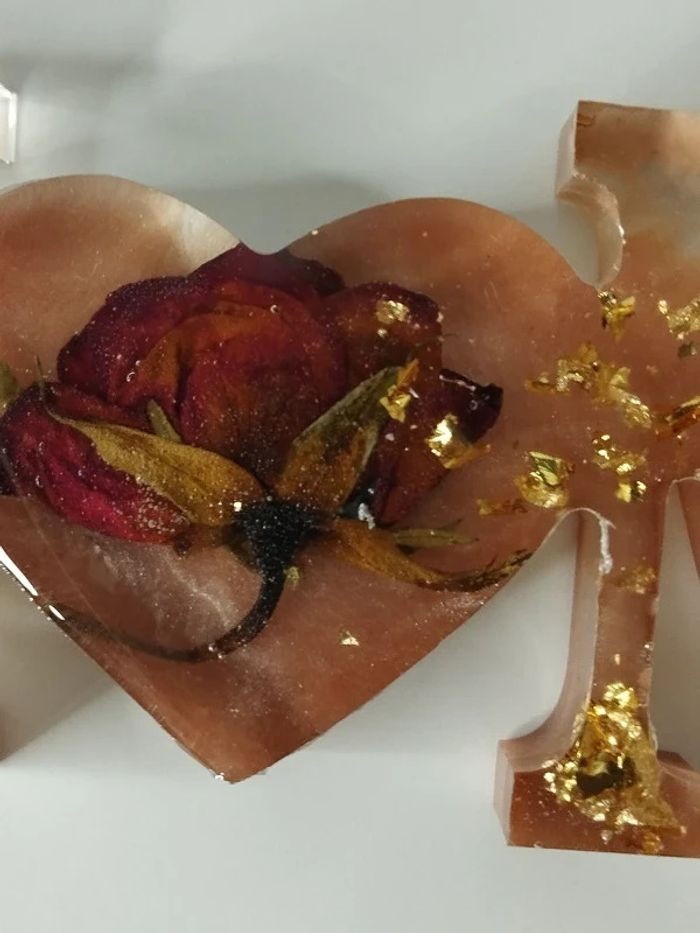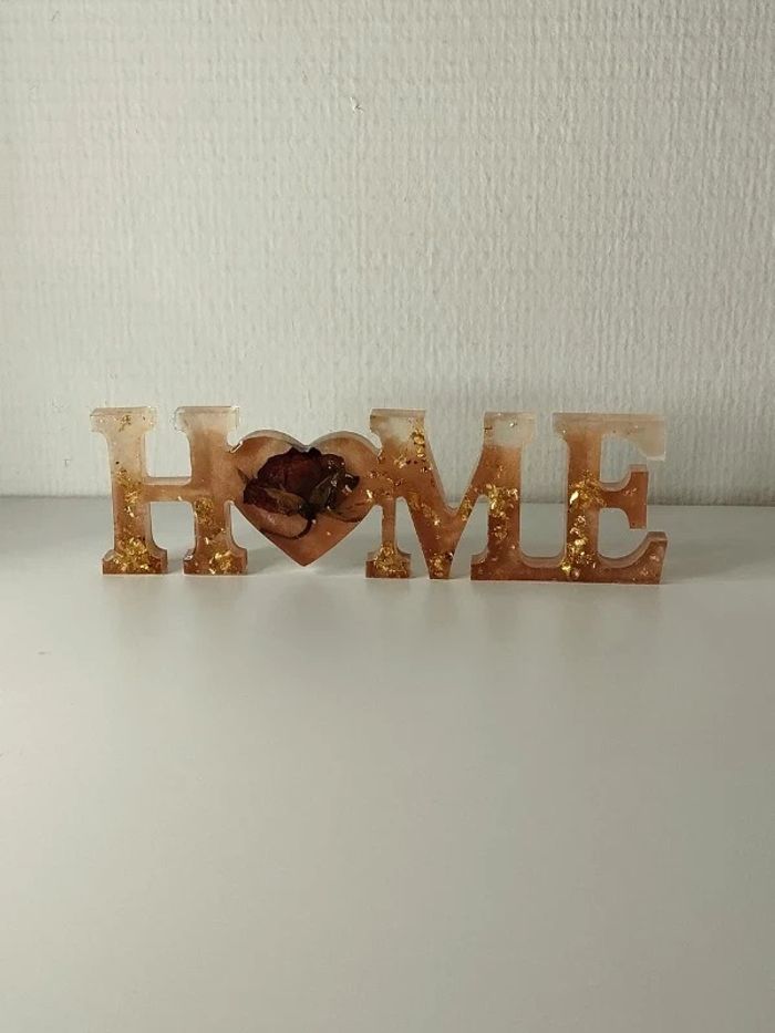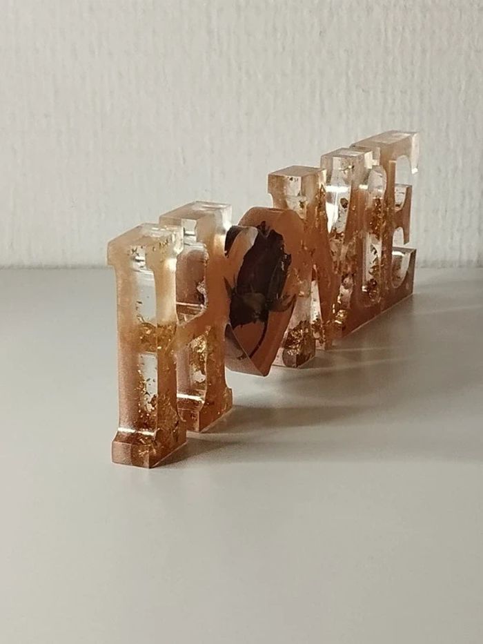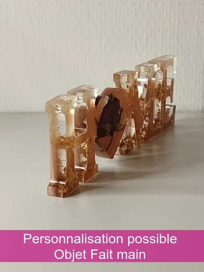 Objet de décoration en résine fleur naturelle feuilles d'or à poser ou murale abr022