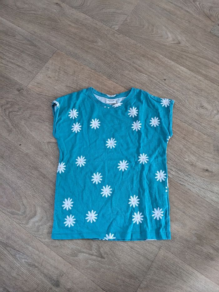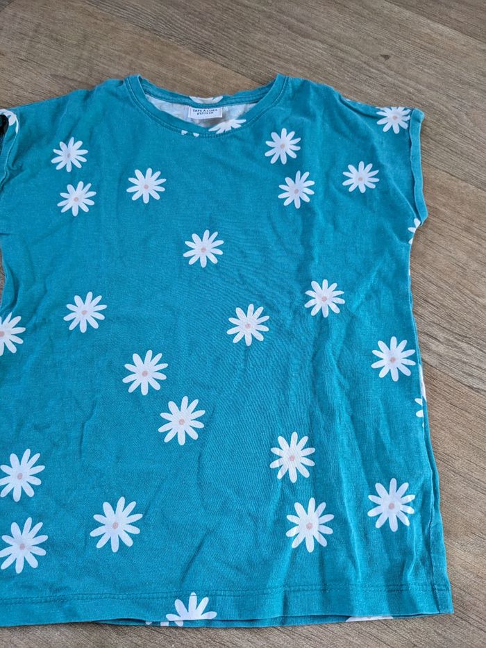 T shirt turquoise bleu/vert motifs fleurs 6 ans TAO - photo numéro 1