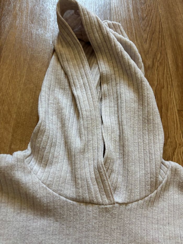 Ensemble doux en maille côtelée de viscose mélangée à la finition légèrement brossée, composé d'un hoodie et d'un legging. Hoodie avec capuche à effet croisé devant et emmanchures descendues. Bord rapporté aux poignets et à la base. Legging avec élastique habillé à la taille et bas de jambe légèrement évasés. Crème 6/7 ans