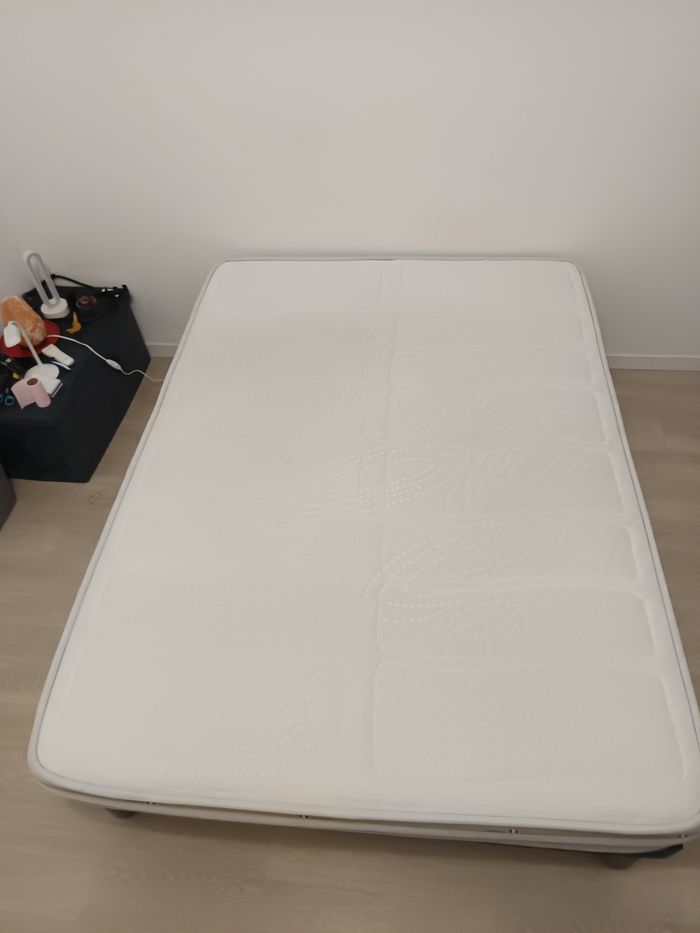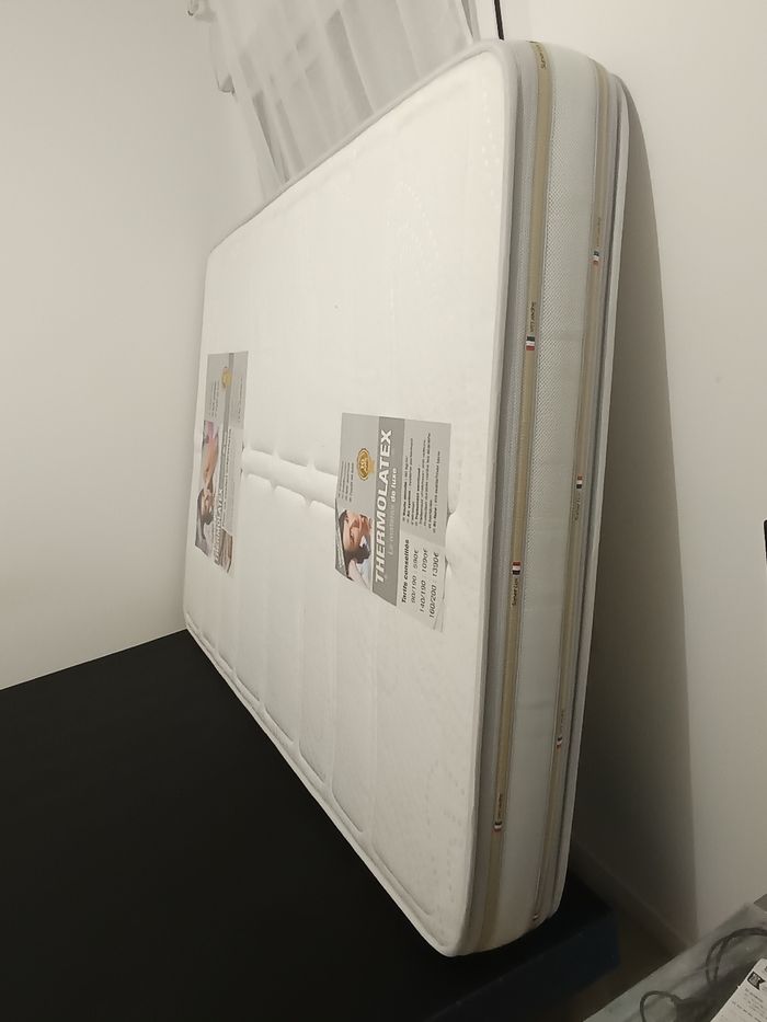 Lit en parfaite condition et matelas avec un tout petit défaut. La valeur du matelas c'est 1090 € neuf La valeur du lit Mérinos 400€ neuf. Total 1500€, je fais tout a 500€.