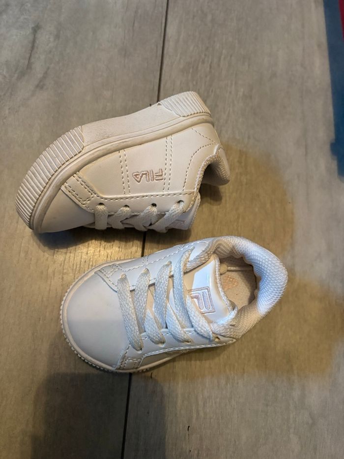 Baskets à lacets Taille 19 FILA Blanche et écriture rose pale