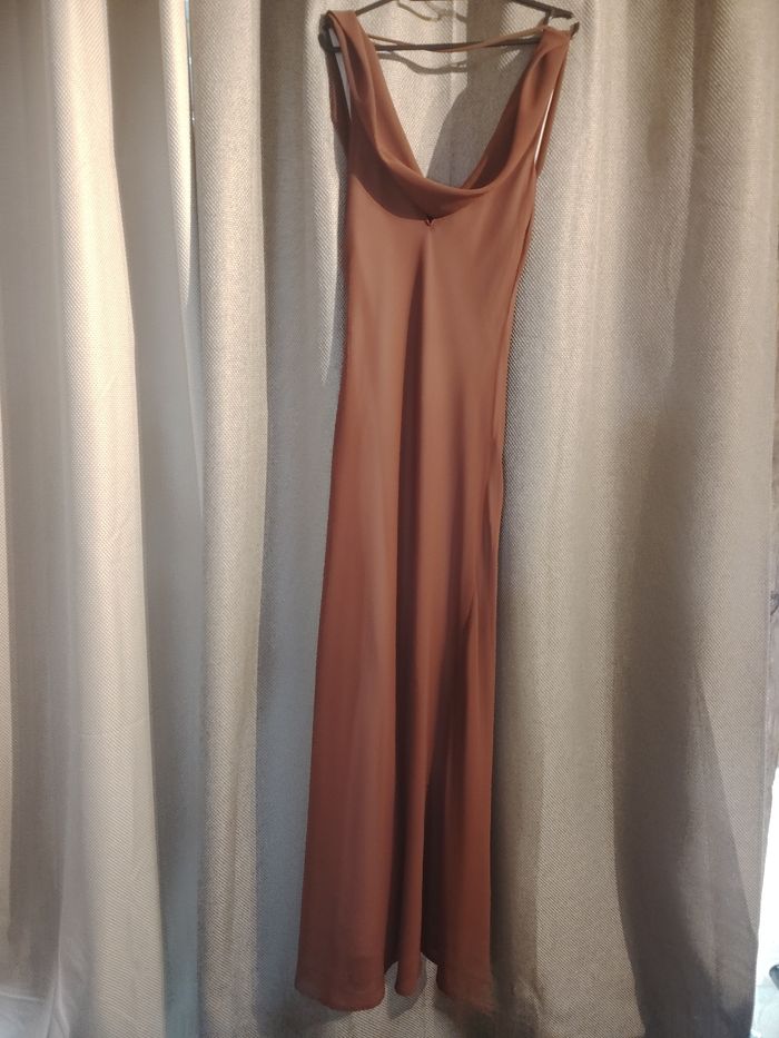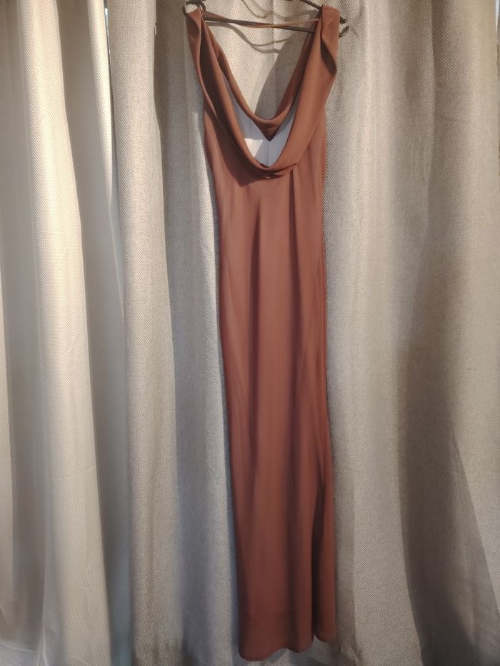 Bonjour je vends une sublime robe Jane Wood en taille 36 de couleur choco. Elle est hyper légère et agréable à porter. Doublé a l'intérieur. Pas transparente Décolleté avant et arrière qui rend merveilleusement bien🌸🥰🤗 100% polyester Elle est neuve avec étiquette N'hésitez pas 🤗