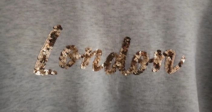 Sweat gris chiné Cache Cache “London” à sequins – taille L – très bon état - photo numéro 7