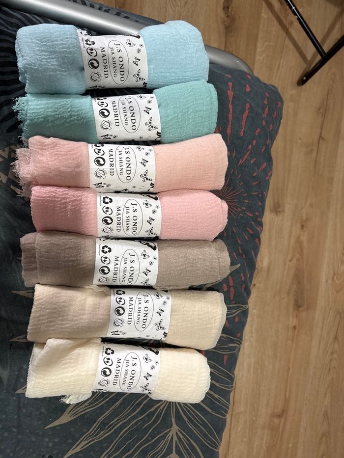 Lot de 7 foulards / écharpes Imitation gaze de coton Matière fluide et légère Possible de vendre à l’unité 3 euros