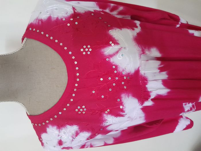 Djellaba, avec broderie et sequin sur le haut, manche longue, imprimé Longueur : 136cm Aiss / Aiss : 63cm Matière : 100 % Viscose Marque : Medjna Kjnedom