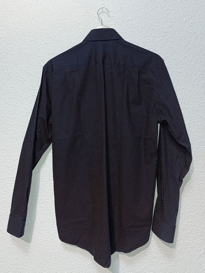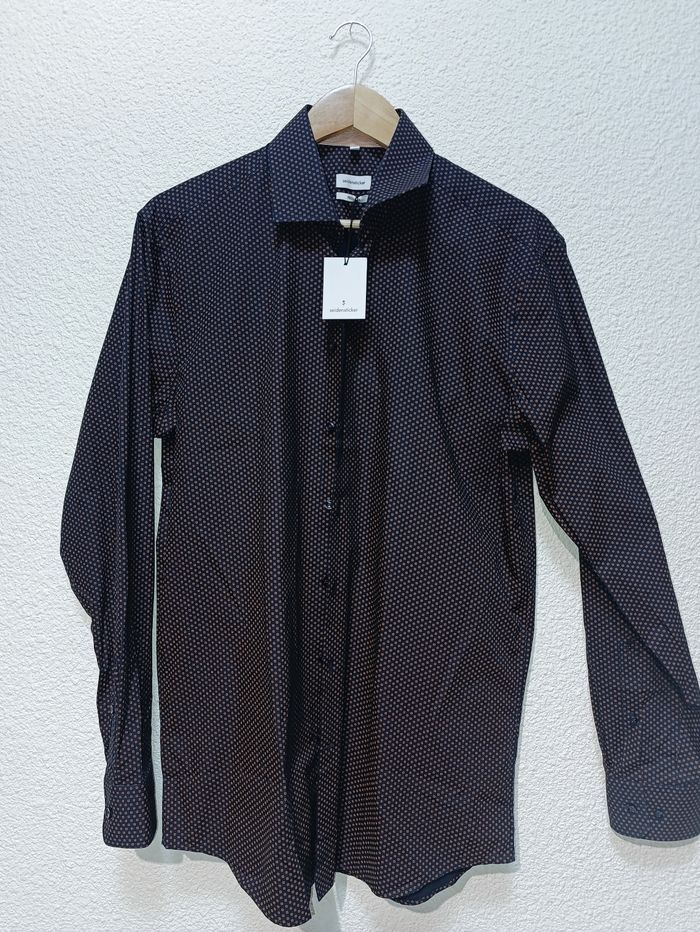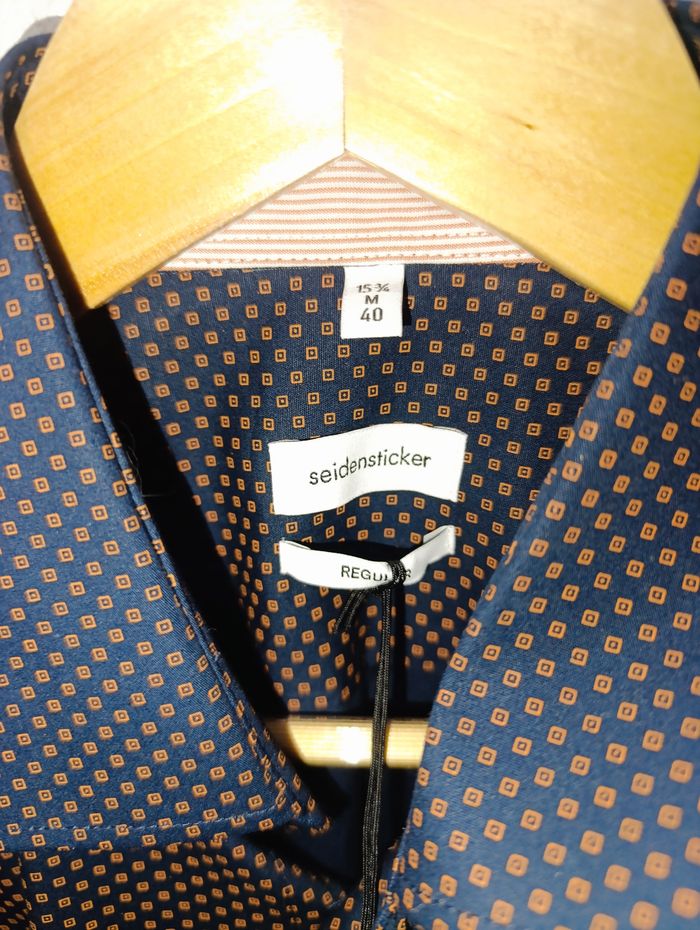 Chemise Seidensticker pour homme, bleu marine et marron à motif carré. Neuve avec étiquette, jamais portée. 100% coton. Taille M/40.