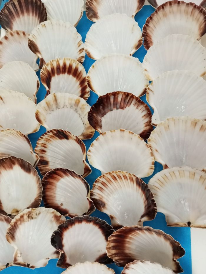 coquilles St Jacques vides pour vos décorations ou vos préparations. coquilles vides de Saint Jacques rincées brièvement à l'eau de mer Attention :coquilles vides de Saint Jacques naturelles, elles ne sont donc pas homogènes ! Lot de coquilles de St Jacques Bretonnes au diamètre de 10 à 11 cm. (Photo sur demande) 6 pour 3€ 12 pour 5€ 30 pour 10€