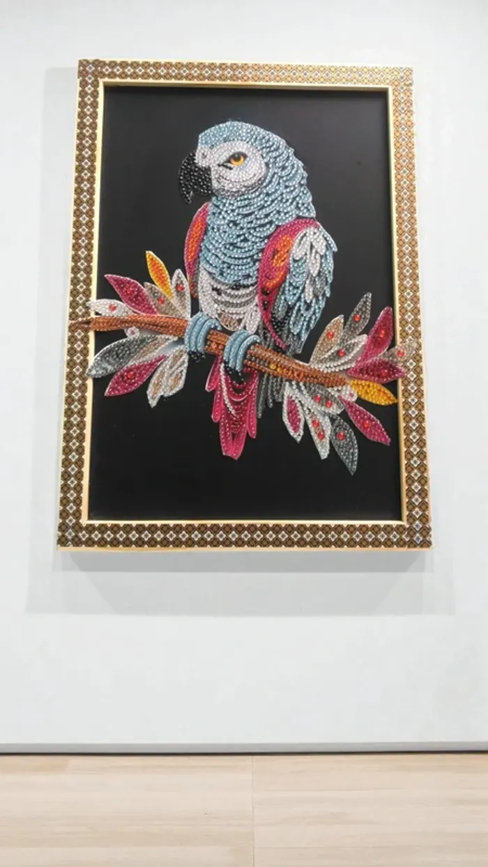 Perroquet sur ardoise prêt à pendre perroquet avec feuilles en débords du cadre donne un effet 3D fixation arrière pour pendre au mur fait main