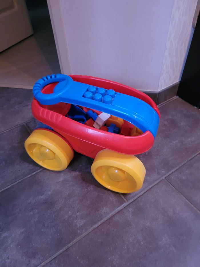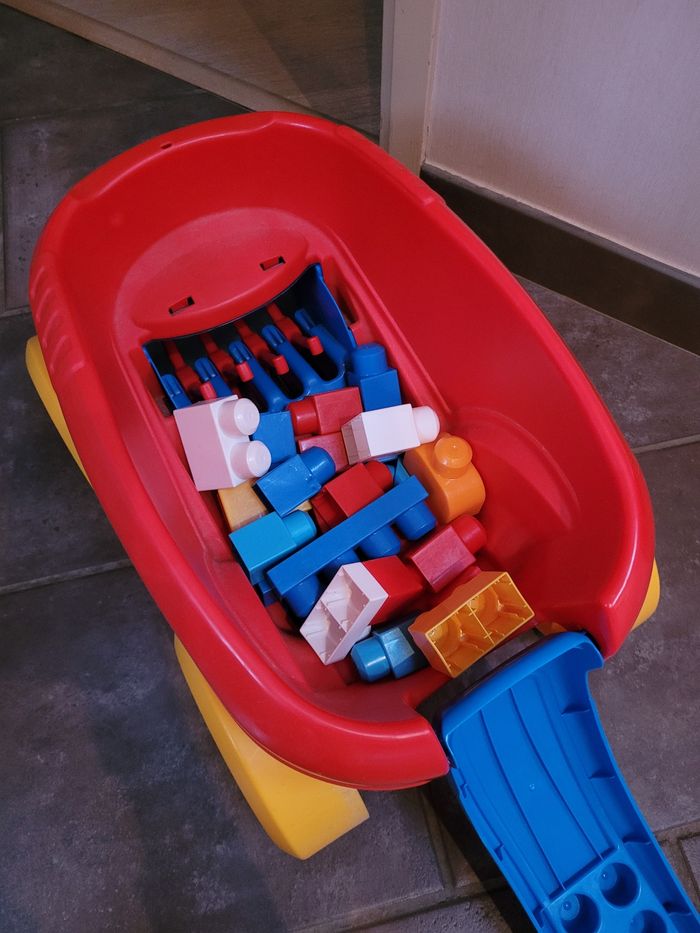 Vends chariot ramasse mega block (comprend 20 mega block). Je rajoute une boîte de mega block à côté.