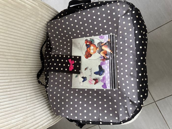 Sac à langer Fifi Bastille En très bon état général 2 endroits légèrement décousu Haut de la fermeture un peu abîmé Se porte main ou épaule Grande contenance