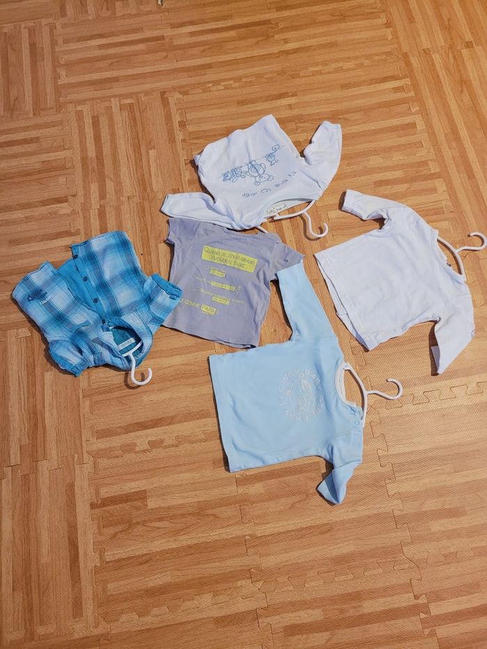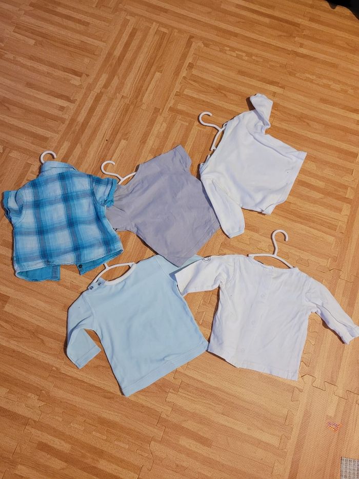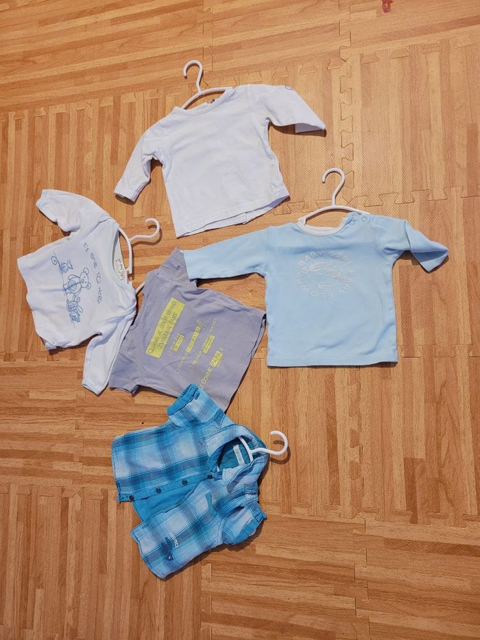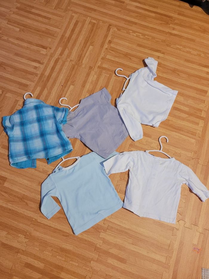 Ce lot contient: Une chemise bleue et blanc,manche courte ,3 mois OBaïdi Un tshirt gris, manche courte,3mois, Sans marque Un tshirt bleuet blanc ,manche longue,3 mois sans marque, Un tshirt blanc,manche longue, 3mois, Petit kimbala ENVO RAPIDE I LE JOUR DE LA COMMANDE SAUF LE DIMANCHE