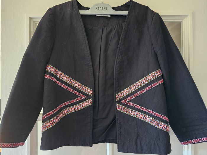Belle veste blazer courte, manches 3/4 Liseré rose en diagonale Doublée Quasi neuve