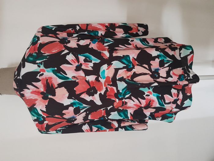 Blouse, imprimé, manche 3/4, bouton en déco devant Longueur : 66cm Aiss / Aiss : 54cm Matière : 94 % Polyester, 6 % Elasthanne Marque : RIU