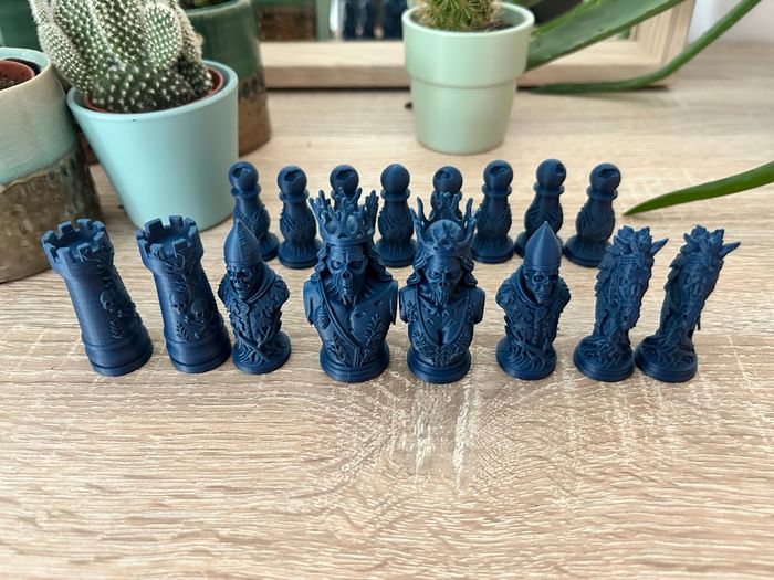 Jeu d’échecs humain vs zombies Humain beige Zombies bleu marine