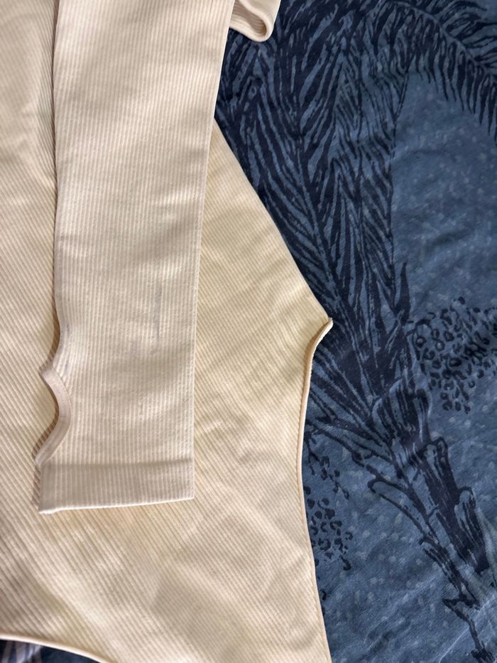 Jamais porté Présente quelques traces de poussière sur les manches… je ne sais pas pourquoi