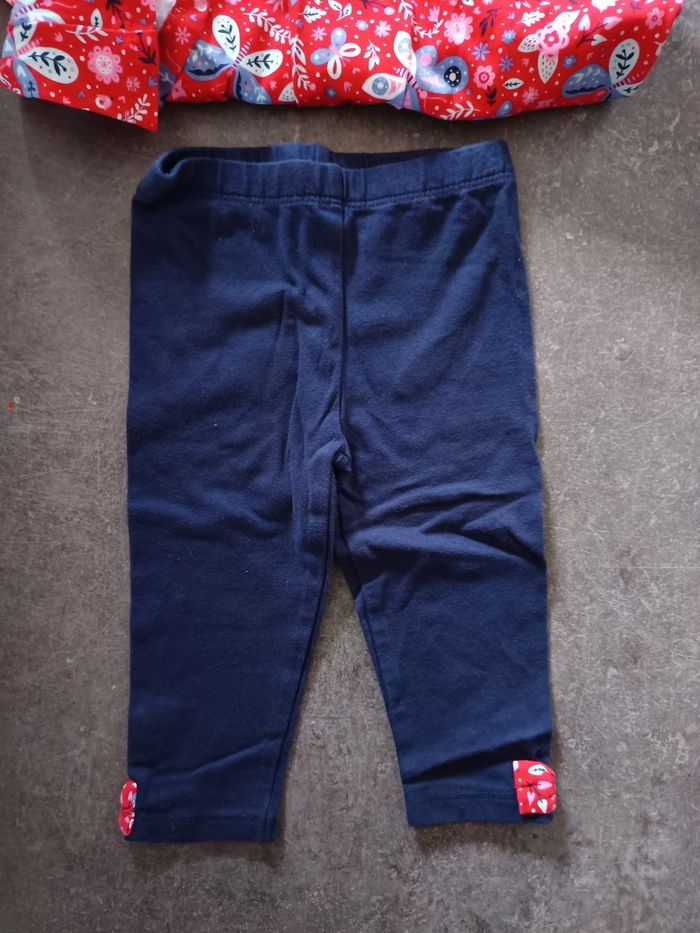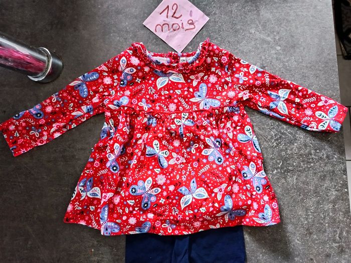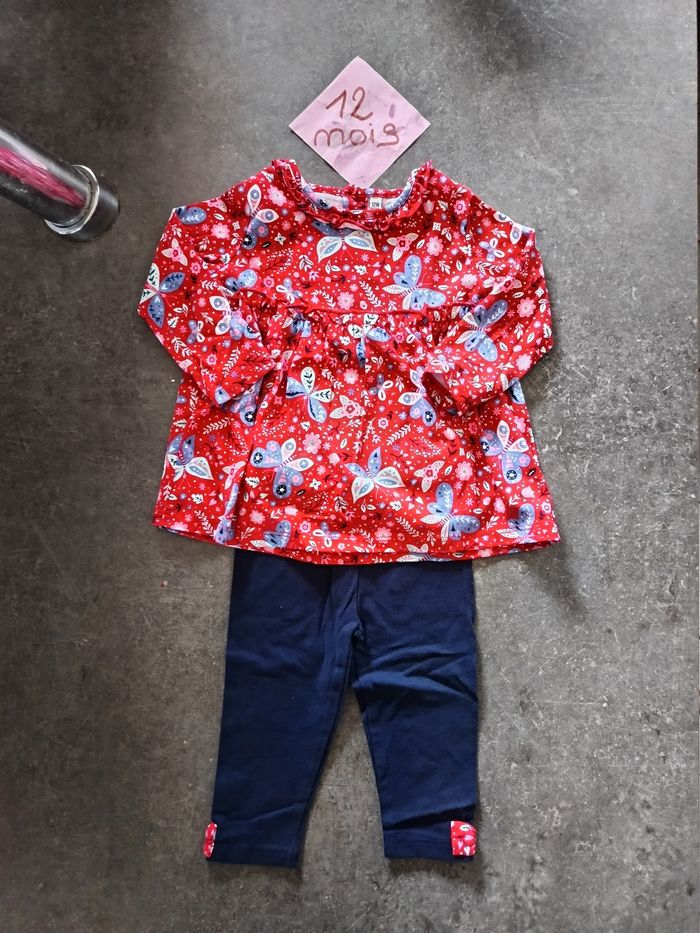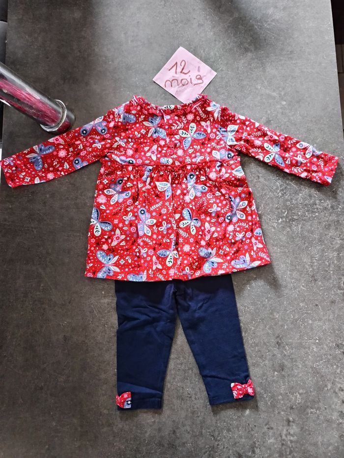 Ensemble 2 pièces : - 1 tunique rouges avec papillons et fleurs - 1 legging bleu marine avec petits coeurs assorti à 'a tunique NEUF jamais porté ! Taille 12 mois
