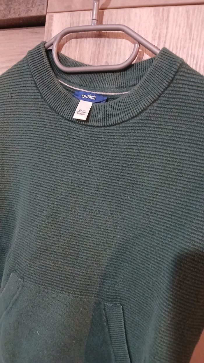 8 ans, pull peu porte, couleur vert pomme vert fonce, okaidi, garçon