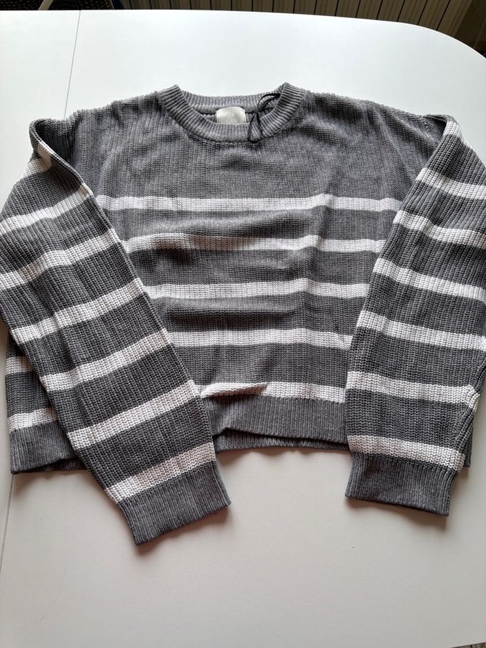 Pull gris à rayure