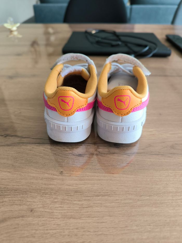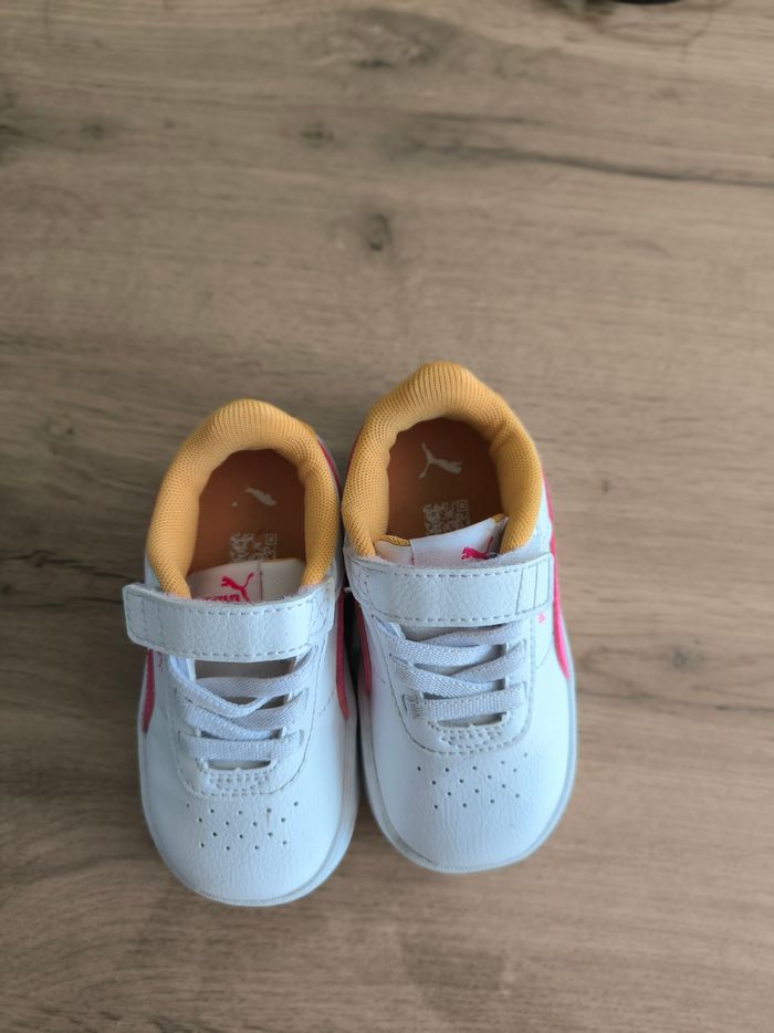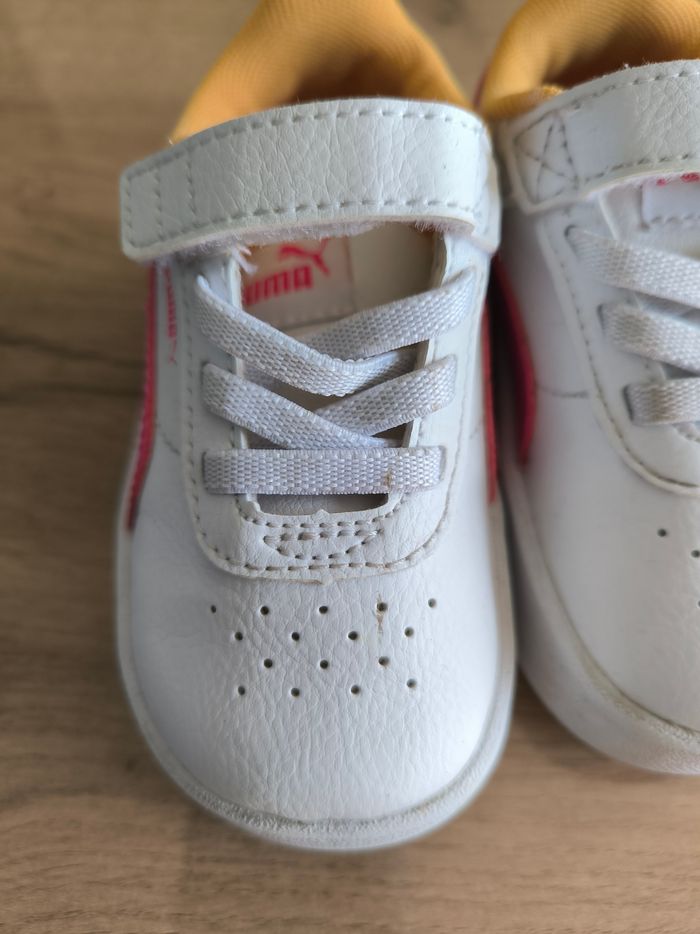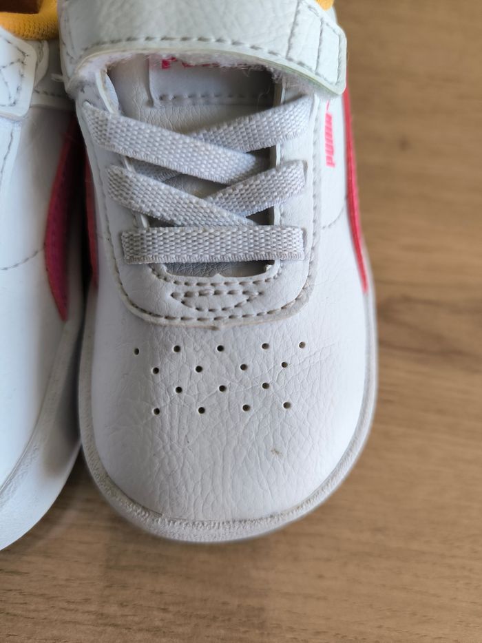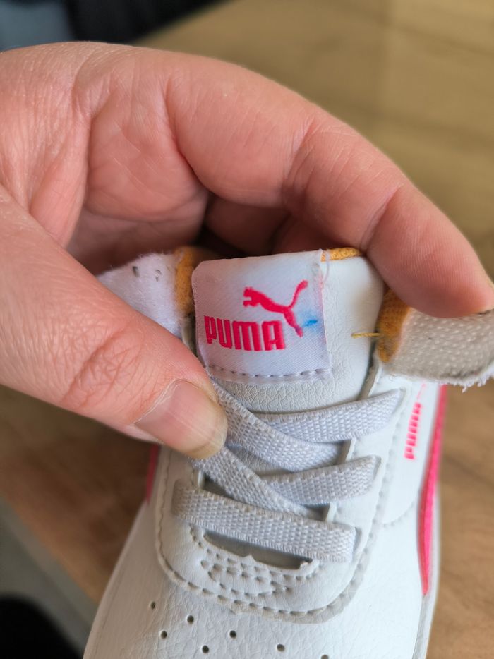 Vends basket Puma fille en taille 21. Il y a une trace de veutre et 2 petite trace sur le dessus des baskets mais ça gêne en rien du tout et elles sont encore en très bonne état.