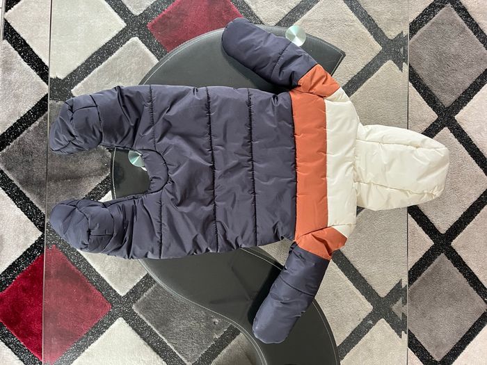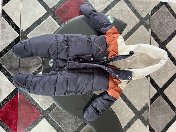 Bonjour, Je vends une Combi pilote pour bébé 3 mois / 60cm de la marque orchestra. Elle est bleu marine avec un peu de marron et de beige, doublée polaire très chaude et moufles amovibles. En parfait état, jamais portée.