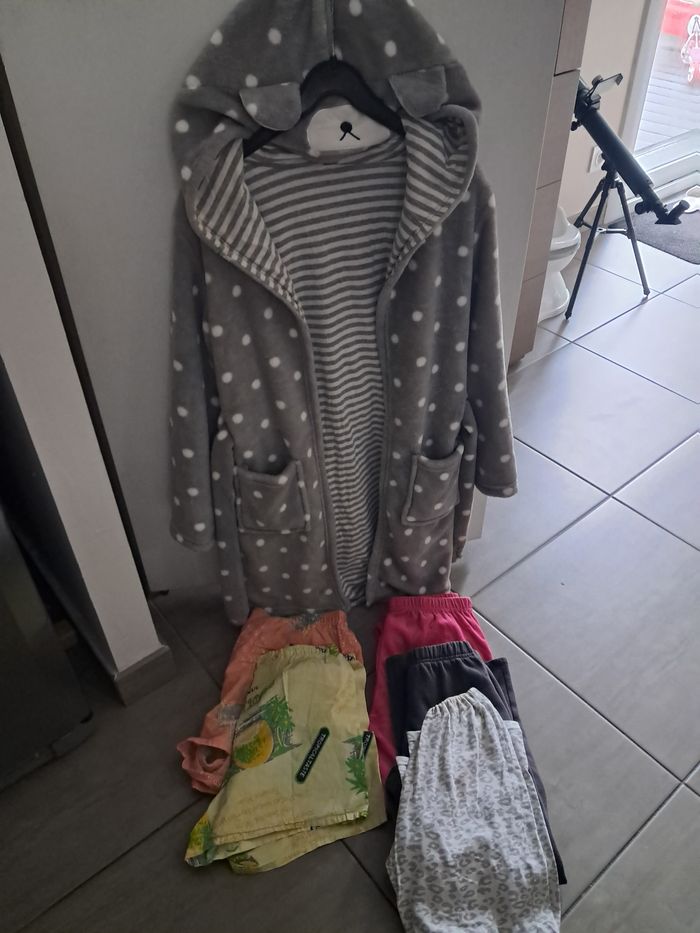 Lot pyjamas (pantalons, shorts et robe de chambre) taille 10 ans