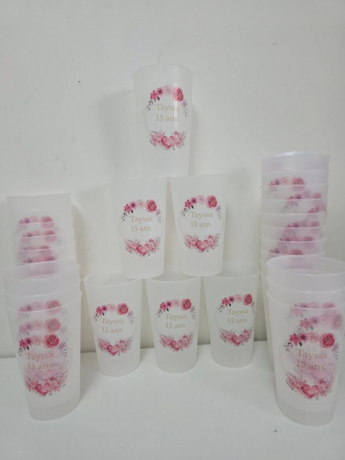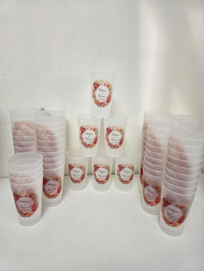 ⚠️Bien lire l'annonce ⚠️ Eco cup 25cl Étiquettes waterproof Tout type de thème 1€ personnalisation inclus Visuel avant création sur ordinateur uniquement Les premiers goblets son réalisez uniquement après règlement Couleur du goblets Opaque Prix dégressif uniquement a partir de 100 pièces Lavage a la mains uniquement (Pas de lave vaisselle )