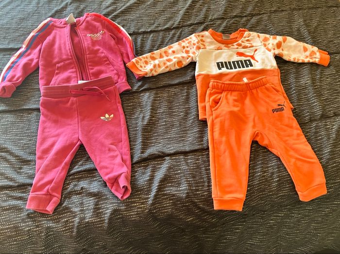 Lot de 2 survêtements 9-12 mois Adidas rose fushia Puma orange