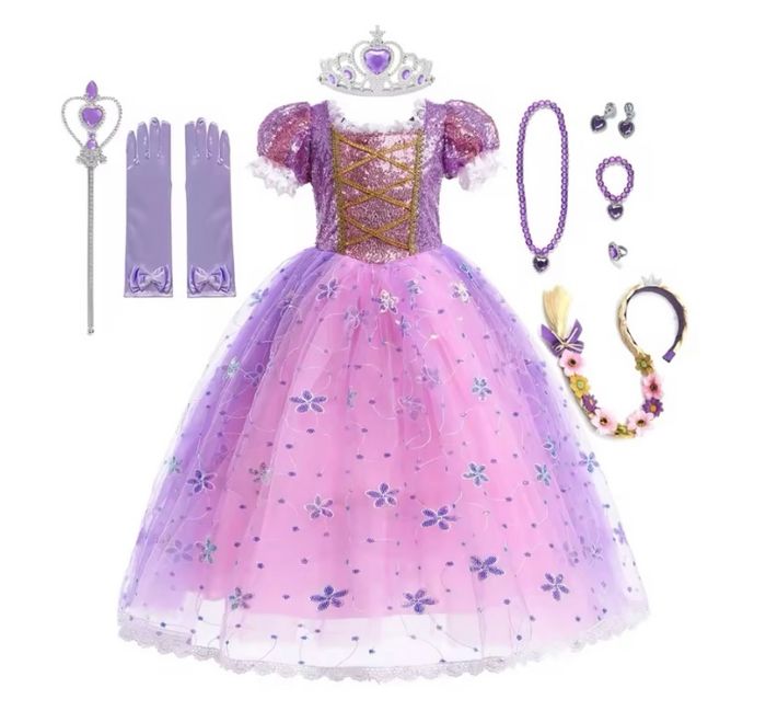 Deguisement princesse raiponce paillette et ces accessoires Taille 5-6ans