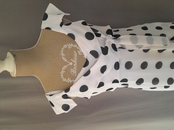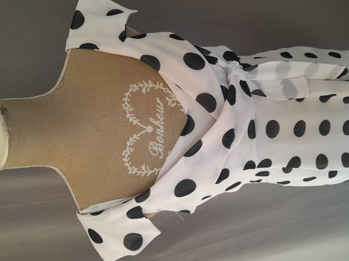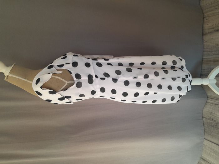Robe, à poids, croisé devant avec nœud, forme boule sur le bas, attache fermeture éclair au dos Longueur : 84cm, Fermeture éclair : 48cm Aiss / Aiss : 48cm Matière : 100 % Polyester Marque : Sonia K