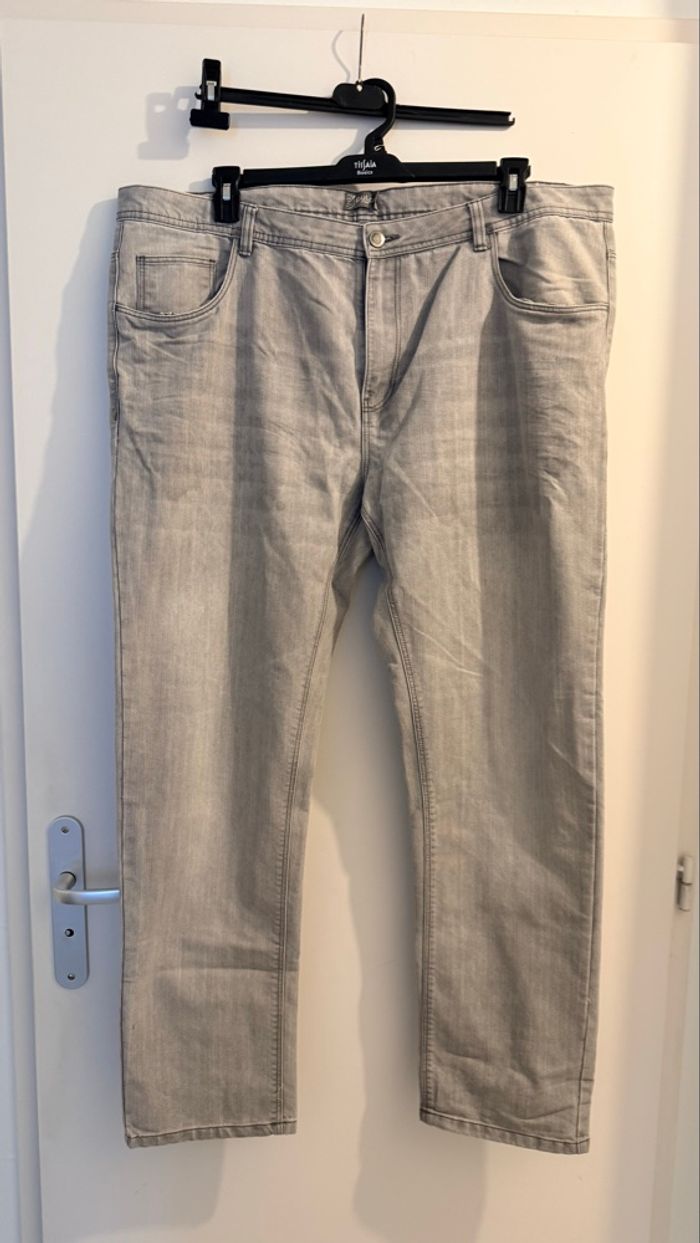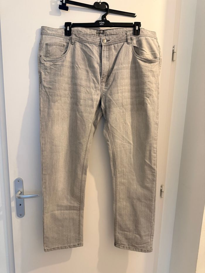 Bonjour bonjour, je mets en vente un jean de marque Gemo Regular coupe droite de couleur grise. Clair de taille 56 en super bon état pour le prix de 10 euros. Cordialement bonne journée