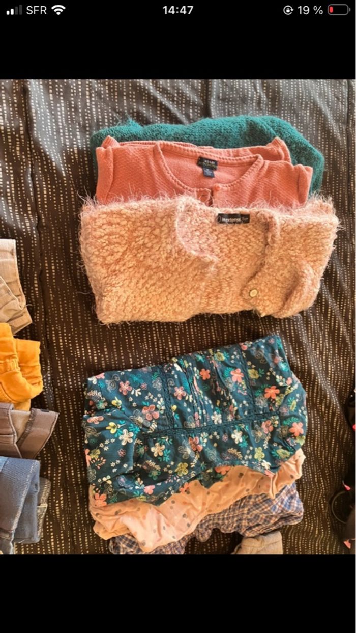 Lot de vêtement fille 2 ans - [ ] 4 jupes - [ ] 3 blouses chemisiers - [ ] 2 robes - [ ] 3 gilets laine - [ ] 5 pantalons 17 pièces