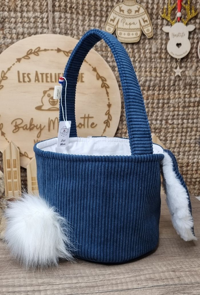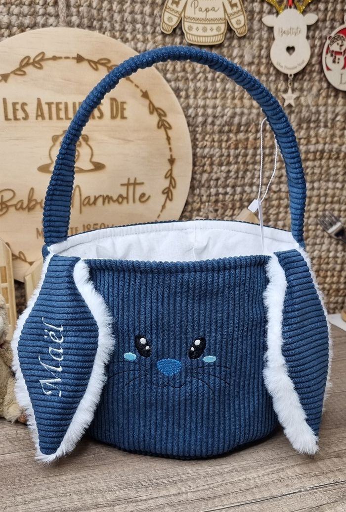 ✨ Préparez une chasse aux œufs inoubliable ! ✨ ​Craquez pour nos adorables paniers de Pâques "Petit Lapin", conçus pour accompagner vos enfants dans leur quête gourmande. 🐰🍫 ​Pourquoi on les adore ? ​Matières nobles : Un mélange de velours côtelé élégant et de fausse fourrure ultra-douce pour un toucher doudou. ​Unique : Personnalisé avec le prénom de votre enfant en broderie (ou flocage) pour un souvenir qu'il gardera précieusement. ​Pratique : Une anse solide adaptée aux petites mains et une taille parfaite pour récolter tous les œufs.
