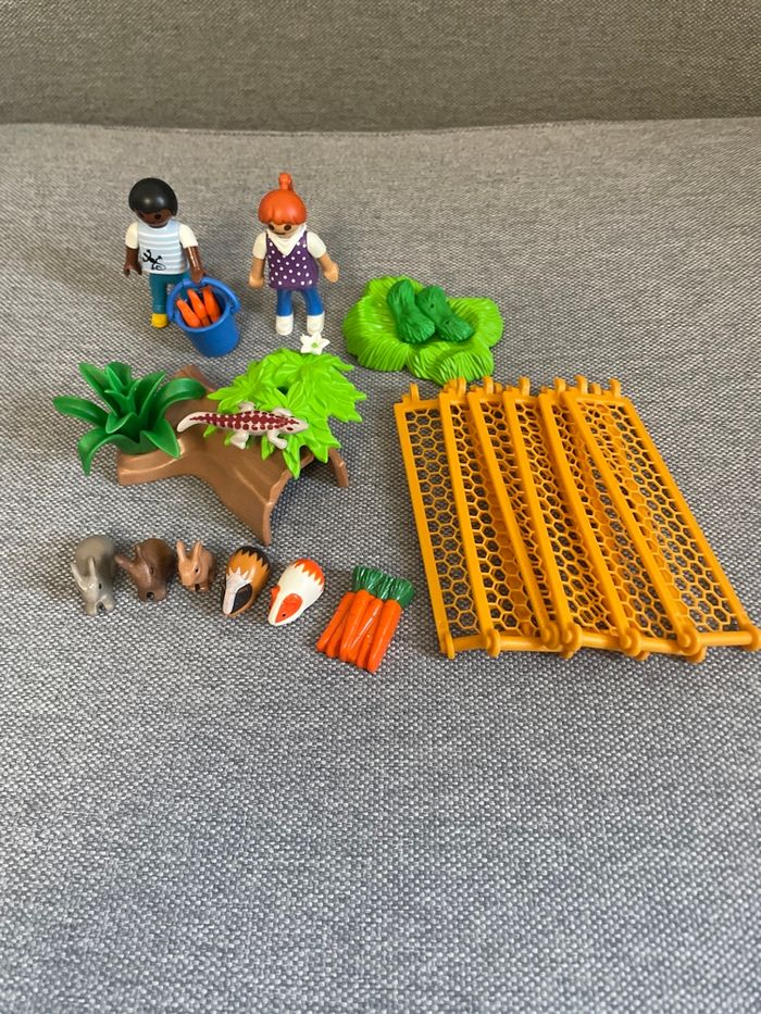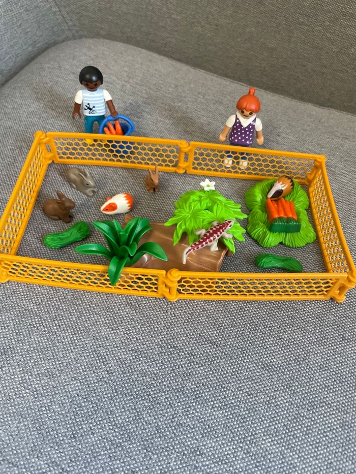 Playmobil avec enfant et enclos à lapin et cochon d’Inde