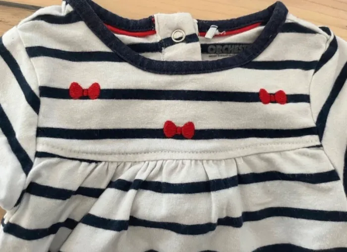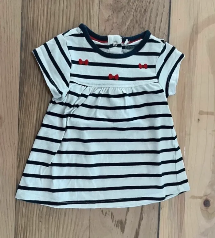 Haut manches courtes Orchestra, taille 3 mois, blanc à rayures bleu marine. Très bon état, parfait pour la saison printemps/été. 🌿 Maison non fumeur. ➡️ Envoi rapide et soigné. 💶 Prix négociable dans la limite du raisonnable #3moisfille #hautmanchescourtes #orchestra #3moisfilledressingombelinedim