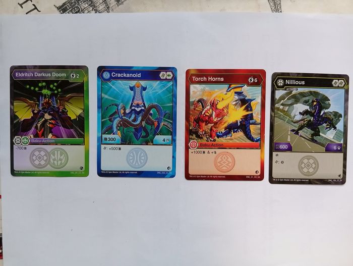 avis aux combattants bakugan ! boostez votre deck ou complétez votre collection avec ce lot de cartes stratégiques indispensables. ce que contient le pack : 🏆 nillious mythic : la carte star du lot, ultra puissante pour écraser vos adversaires en duel. 🔥 pack de cartes action : inclut des cartes tactiques comme torch horns, crackanoid et plusieurs autres cartes baku-action pour maîtriser l'arène. pourquoi choisir ce lot ? état impeccable : cartes soignées, pas de coins abîmés, pas de pliures. (voir photos). 100% officiel : vraies cartes bakugan pour jouer en tournoi ou entre amis. petit prix : un lot complet pour le prix de deux cartes à l'unité ! envoi et confiance : 📦 emballage blindé : les cartes sont envoyées sous protection rigide pour arriver chez vous dans un état parfait. ⚡ expédition éclair : colis déposé sous 24h (mondial relay