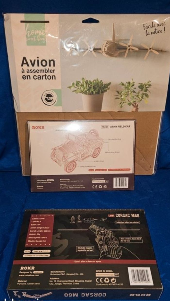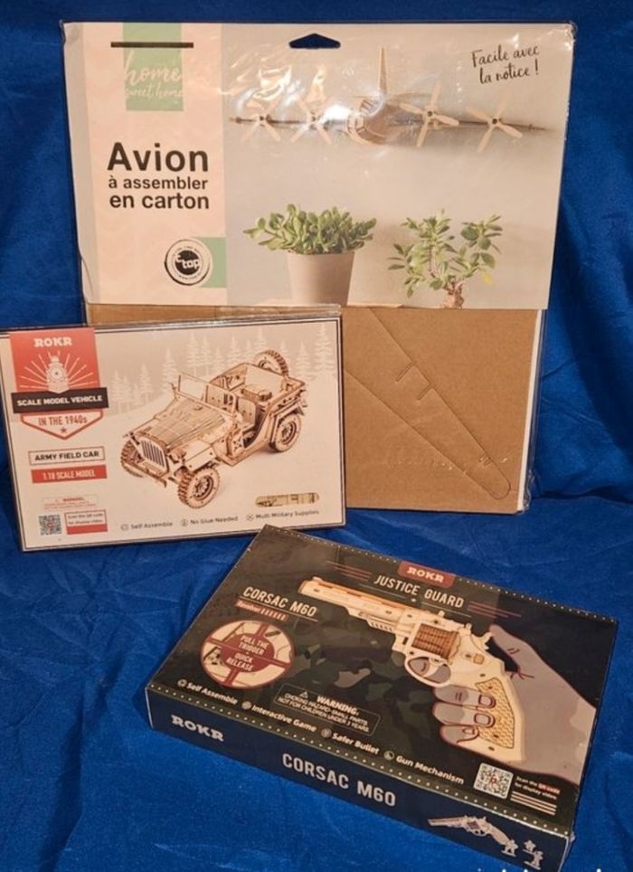 Bonjour. Vend maquette en bois et cartons.