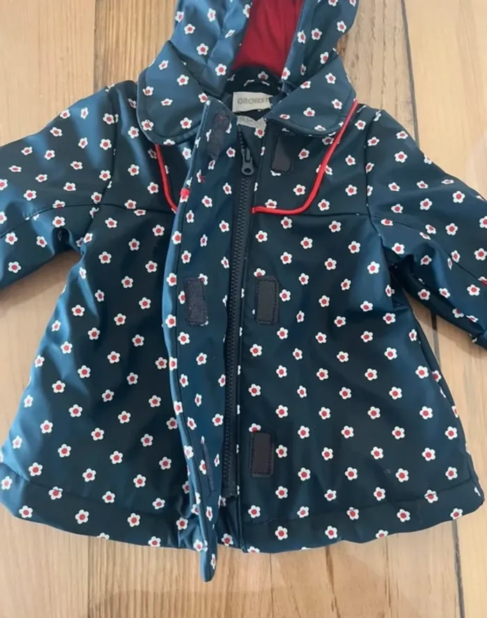 Imperméable fille Orchestra, taille 3 mois, doublé, en très bon état (très peu porté). Couleur bleu marine et rouge avec jolis motifs floraux. Capuche et doublure chaude. 🌿 Maison non fumeur. ➡️ Envoi rapide et soigné. 💶 Prix négociable dans la limite du raisonnable #3moisfille #manteau #orchestra #3moisfilledressingombelinedim
