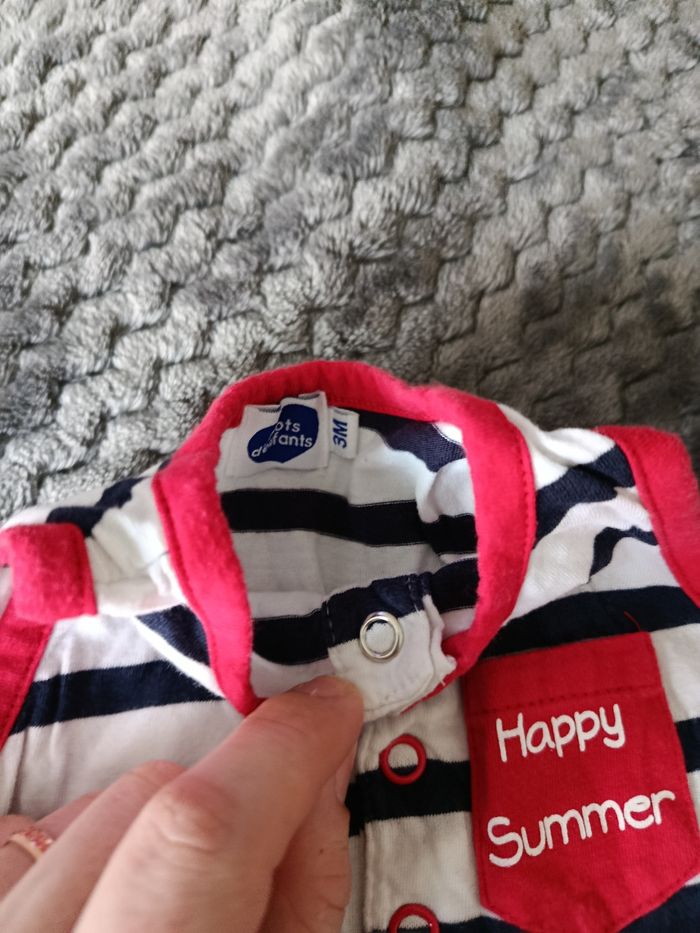 Je vends cette combishort en très bon état taille 3 mois marque mots d'enfants