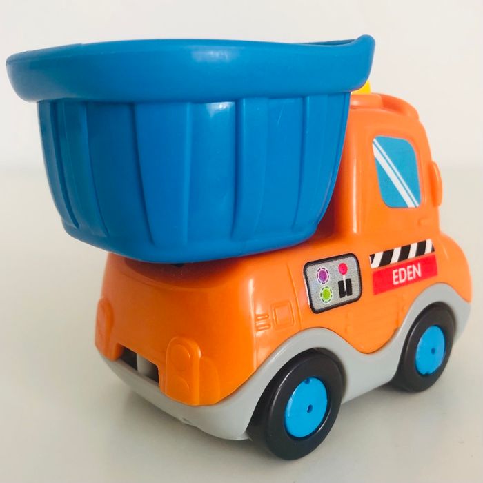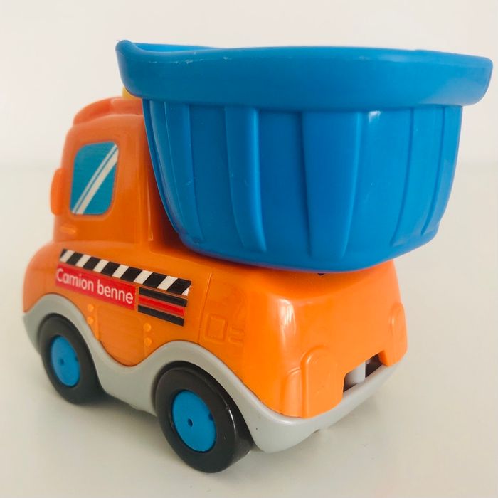 Je vends un véhicule interactif tutut bolide « Eden Camion Benne » en très bon état. Lorsqu’on appuie sur le bouton sur le toit la benne bouge. Musique, sons et lumière. Piles non fournies.