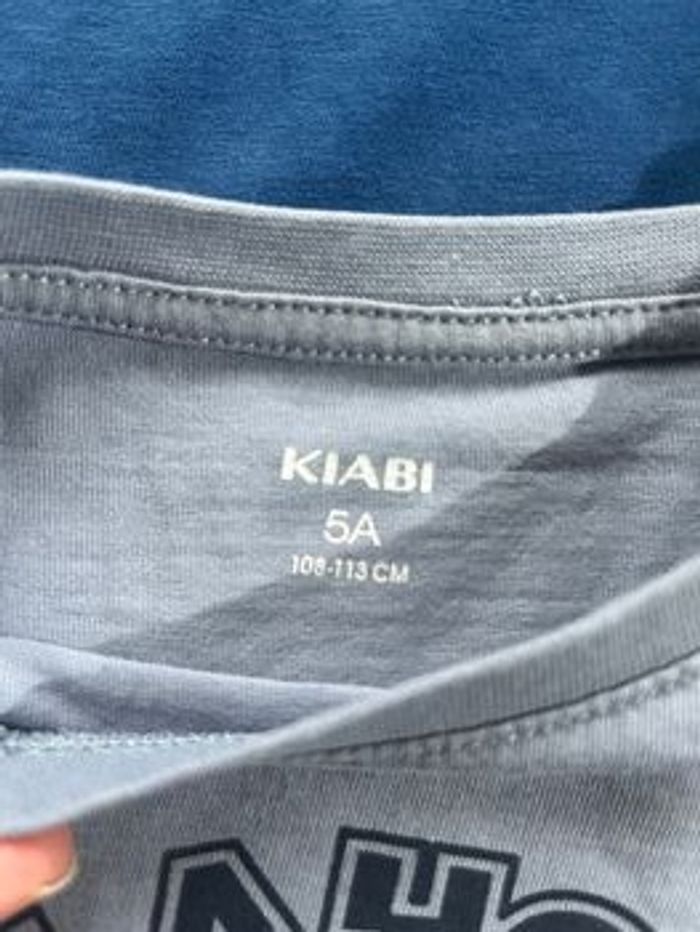 Un t-shirt bleu uni Un t-shirt bleu clair avec imprimé En parfait état porté une fois chacun Kiabi 5 ans