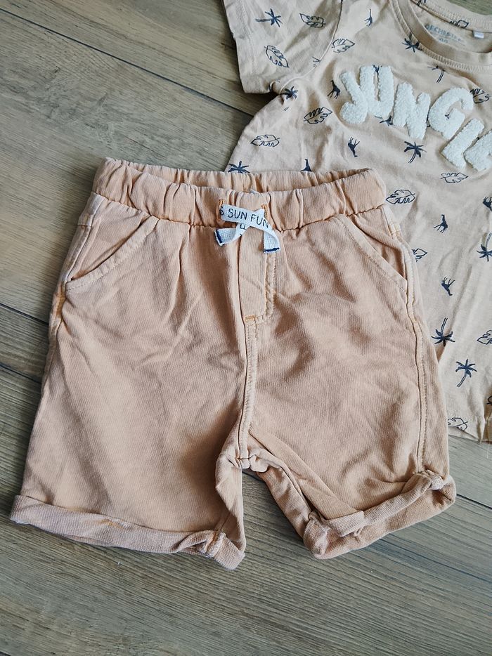 Ensemble composé d'un t-shirt et d'un short pour garçon en taille 23 mois. Sans tache ni trou. Maison non fumeur, mais avec animaux