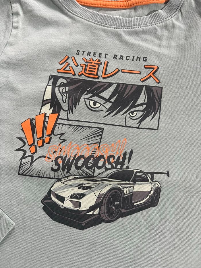 T-shirt motif voiture manga Taille 5 ans Kiabi En très bon état