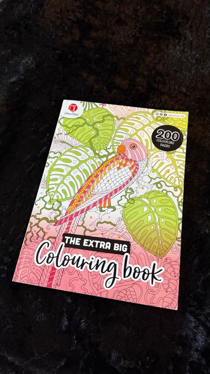 Lot de 2 grands livres de coloriage de la même gamme The Extra Big Colouring Book (200 pages chacun). ✨ Détails : - Très grand format - Motifs nature / animaux (oiseaux, feuilles, papillon, fleurs…) - Idéal pour se détendre, adultes comme ados 📌 État : - Livre violet : 2 dessins ont été coloriés (Voir photos) - Livre rose/vert : 5 dessins ont été coloriés (Voir photo, manque un dessin mais pas assez de place.) ➡️ Le reste des pages est en très bon état, propres et non utilisées ➡️ Voir photos pour plus de détails 📦 Vendu en lot uniquement.