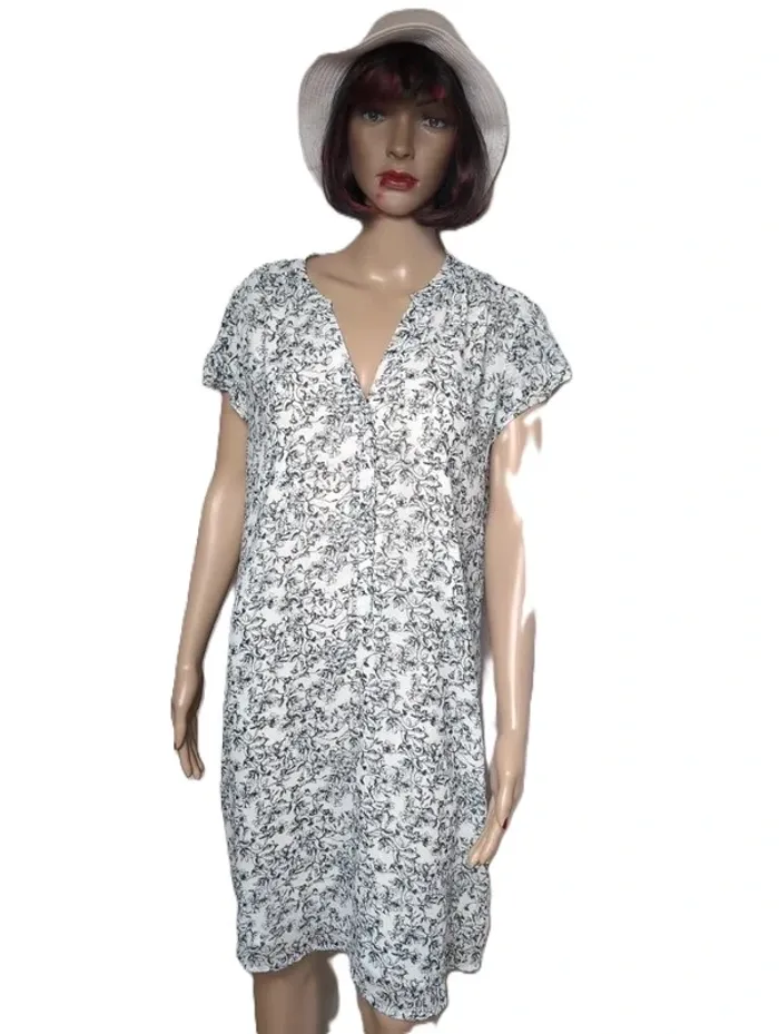 Robe élégante et féminine de la marque H&M, idéale pour le quotidien ou pour une occasion. Son motif fleurs sur fond noir et blanc apporte une touche de fraîcheur et de style à votre tenue. ✨ Détails du produit : • Marque : H&M • Taille : 46 (#vavaneva46) • Couleurs : noir et blanc • Motif : fleurs • Mesures : aisselles à aisselles 51 cm, longueur 98 cm • Coupe confortable et flatteuse 📦 Envoi rapide et soigné ❌ Maison non-fumeur #robe #H&M #noiretblanche #fleurs #femme #mode #grandetaille #vavaneva46 #occasion #secondevie