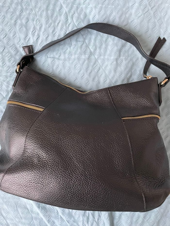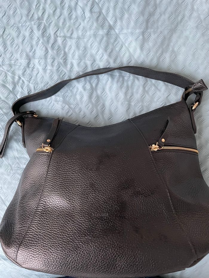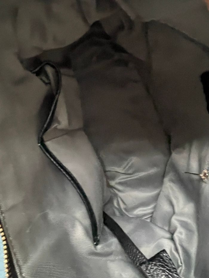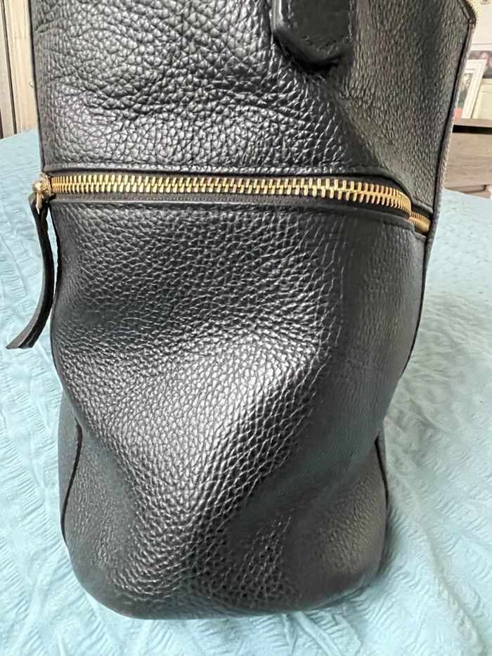 Grand sac cuir noir Grandes poches intérieures 2 poches zippees à l’extérieur Porte une fois (trop grand) Envoi rapide et soigné