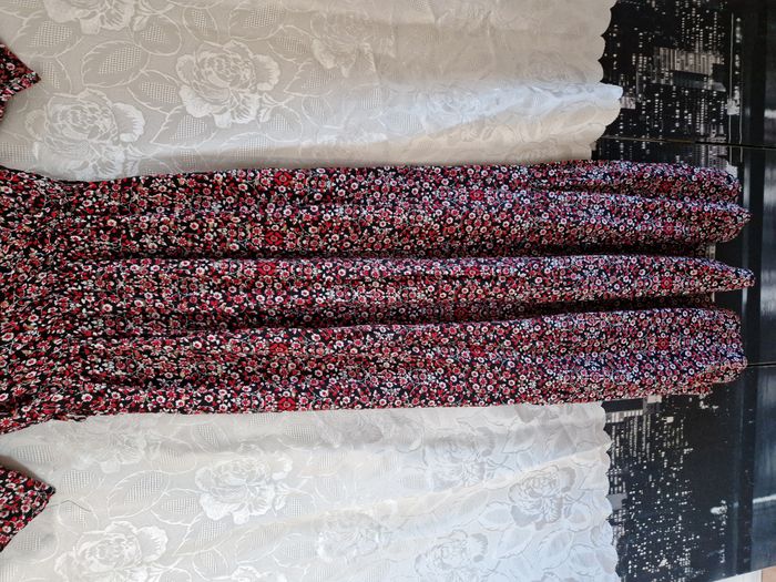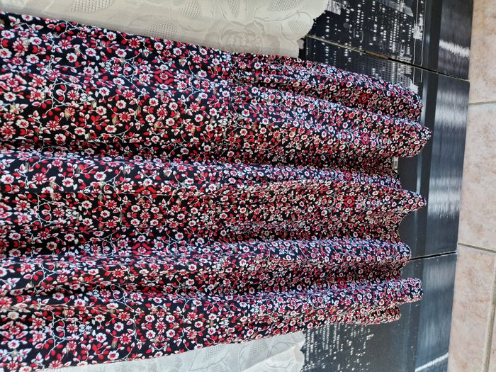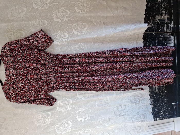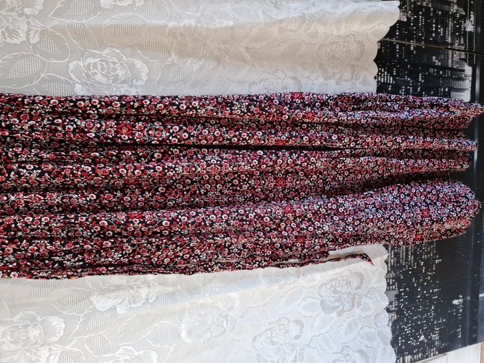 vends une robe longue pour femme de couleur rouge et noire avec des fleurs trés bon état taille: S / M je vends d'autres affaires femme ou autres , n'hésitez pas à me demander si besoin