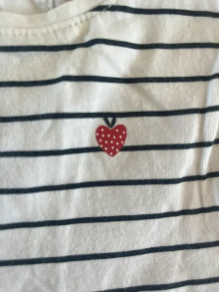 Blanche à rayures bleues – Neuve, jamais portée Légère, look marin, lavée mais jamais utilisée. 🌿 Maison non fumeur. ➡️ Envoi rapide et soigné. 💶 Prix: 4 € (négociable dans la limite du raisonnable) #6moisfille #robe #kiabi #6moisfilledressingombelinedim